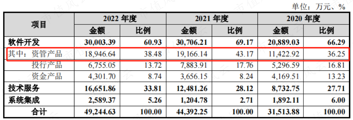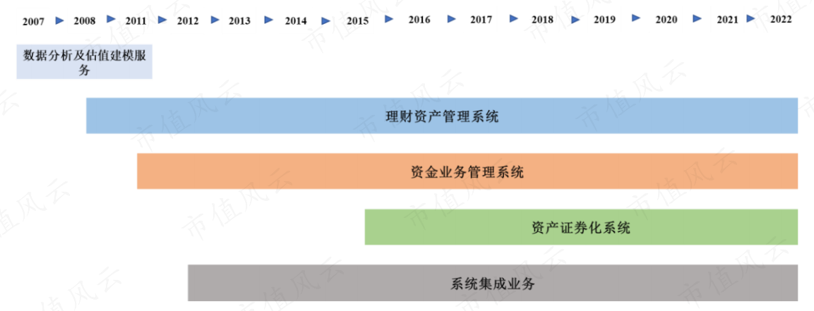 其中软件开发业务中的资管产品开始于公司2008年承建招商银行理财资管系统;