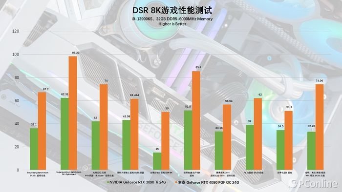如果你觉得这些还不够过瘾,我们也安排了更多游戏的实测,1080P大家应该不用想也知道,这张卡就是爆杀,这里给大家展示2K、4K以及8K的成绩。