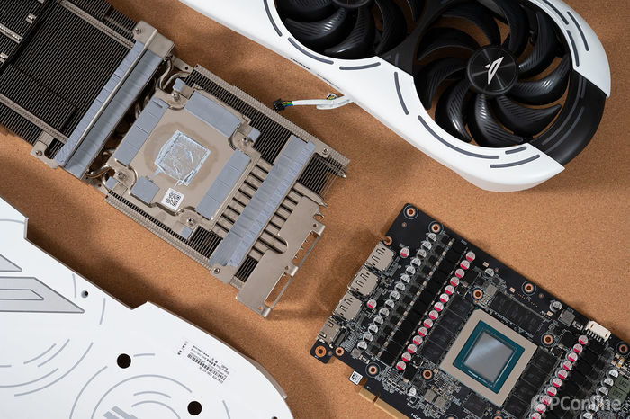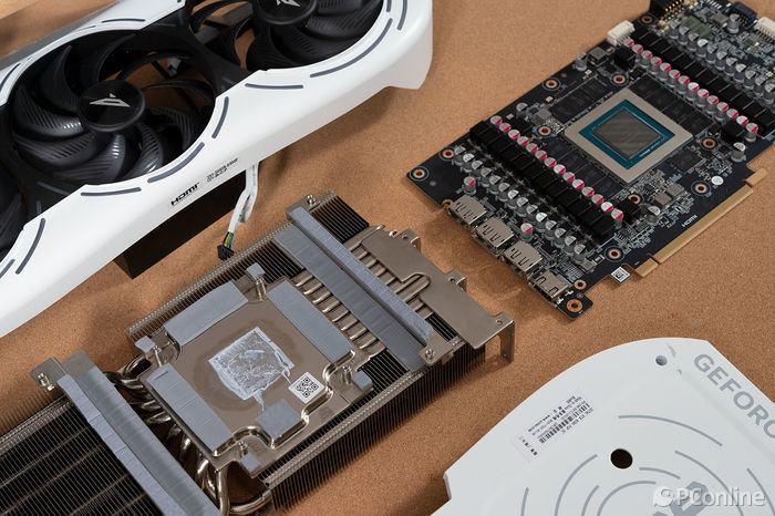 索泰RTX 4090 PGF OC虽然看起来很厚实,不过拆解起来还是相当轻松的,传统的“三明治”结构。卸下金属背板上的螺丝后就可以分离整个散热系统与PCB板。