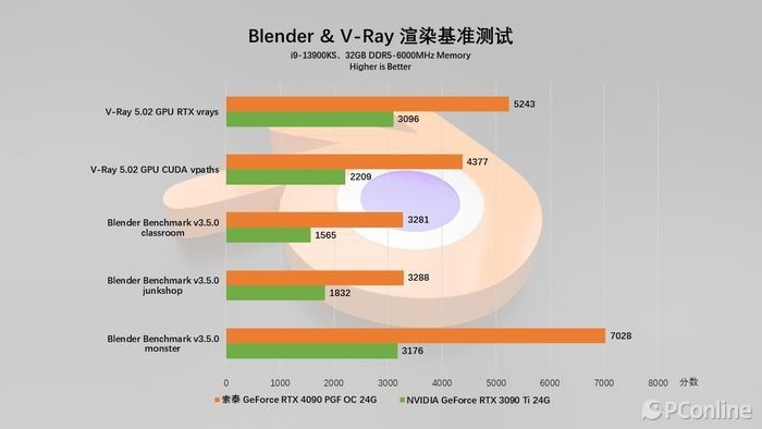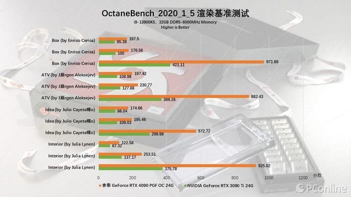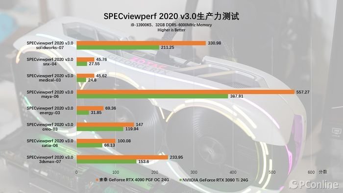 同样出色的还有OC渲染器,索泰RTX 4090 PGF OC的表现真的是顶级的存在,性能也提升了95%以上,想要提升专业性能的用户不妨考虑一下这张索泰RTX 4090 PGF OC,顶级的显卡顶级的体验,当然你也将获得顶级的效率。