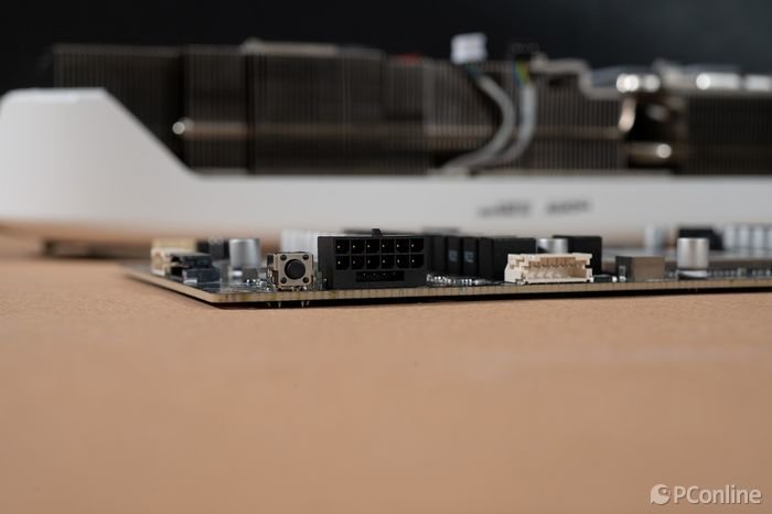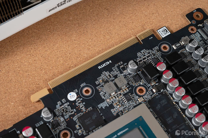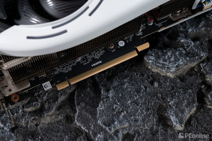显卡底部还可以看到显卡的PCIe金手指,标准的PCIe 4.0 x 16速率,它可以为显卡提供更快的传输速度。