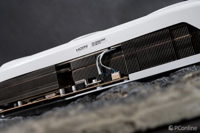 转头看看显卡底部,一排排散热鳍片已经快要突出外壳了,可以预见这款显卡的散热相当出色。