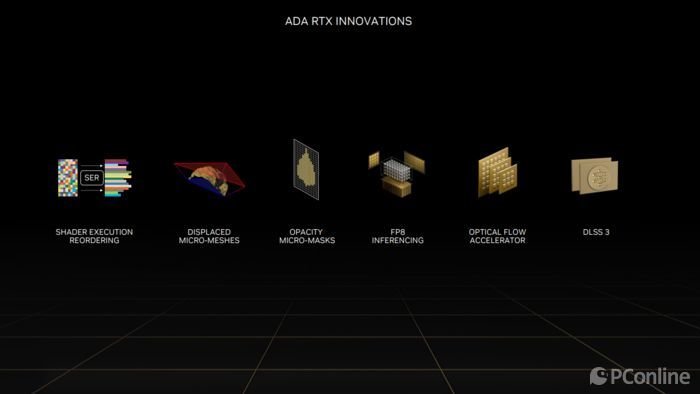 从Turing架构开始,NVIDIA首次在显卡中加入了加速光线追踪的RT Core单元,以及面向AI推理的Tensor Core单元,这革命性的创新使实时光线追踪成为可能。而Ampere架构则是全面的架构改进,在加入新一代的二代RT Core和三代Tensor Core基础上,还有着更先进的SM单元设计,这样显卡工作效率那是翻倍的提升。而来到Ada Lovelace架构,同时是以效率提升为大前提,自然是引入了最新的第三代 RT Cores与第四代 Tensor Cores单元,同时加入众多新颖的黑科技,从执行效率来说Ada Lovelace架构是上代Ampere架构的2倍以上,甚至光线追踪能力更是达到了恐怖的4倍性能。