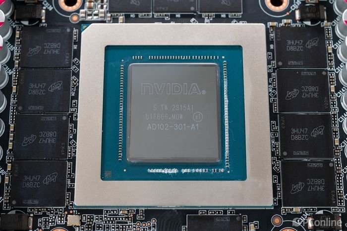 终于轮到我们的主角了,这颗AD102-301-A1核心四平八稳的镶嵌在PCB的正中央。你以为它只是小小的一颗芯片,其实它得益于TSMC 4N工艺,在里面塞下了763亿个晶体管,这个数量足足是RTX 3090 Ti的2.7倍!