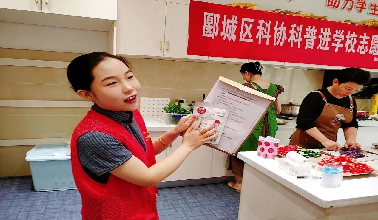 漯河市营养学会副秘书长秦思和漯河市营养学会常务理事张瑞敏一起带领学生们开展手工减肥餐制作实践。