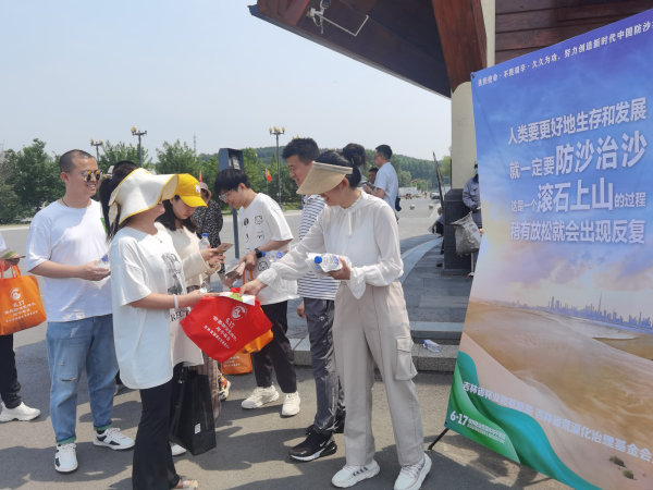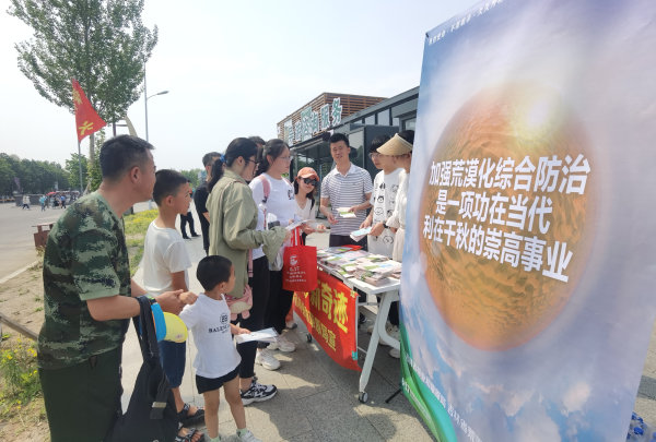 在宣传活动现场,通过悬挂宣传标语、摆放宣传板、发放宣传材料和主题宣传品、播放宣传短片、专业人员现场讲解等方式,广泛深入地宣传荒漠化防治的意义、荒漠化防治相关的法律法规和政策、吉林省荒漠化的现状、吉林省荒漠化防治的成果,提高群众对荒漠化防治重要性的认识,进一步调动社会各界参与荒漠化防治的积极性。
