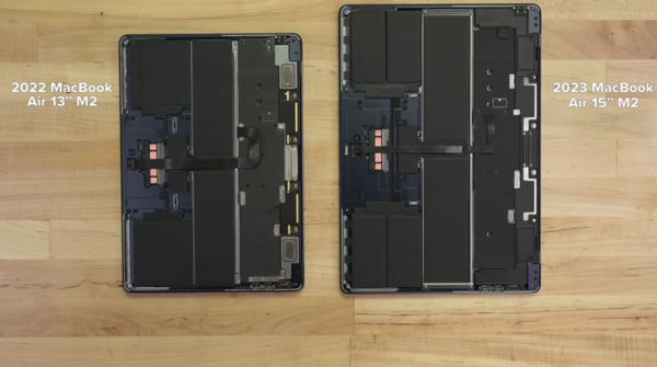 【CNMO新闻】近期全新的15英寸MacBook Air正式上市,而外媒也对其进行了拆解。正如我们此前的预期,新款MacBook Air在内部结构设计上与去年发布的13英寸版MacBook Air保持一致,唯一的区别就是新MacBook Air充分利用了内部空间,搭载了全新的六扬声器系统。