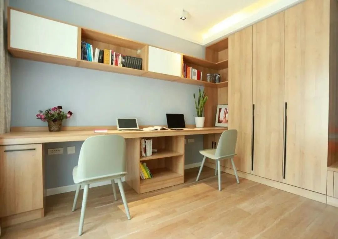 根据自身的居住需求和房间的使用功能,合理规划空间,定制组合型衣柜,既能保证实用又利用空间。常见组合有:学习桌+衣柜+书柜、化妆台+衣柜+床头柜。