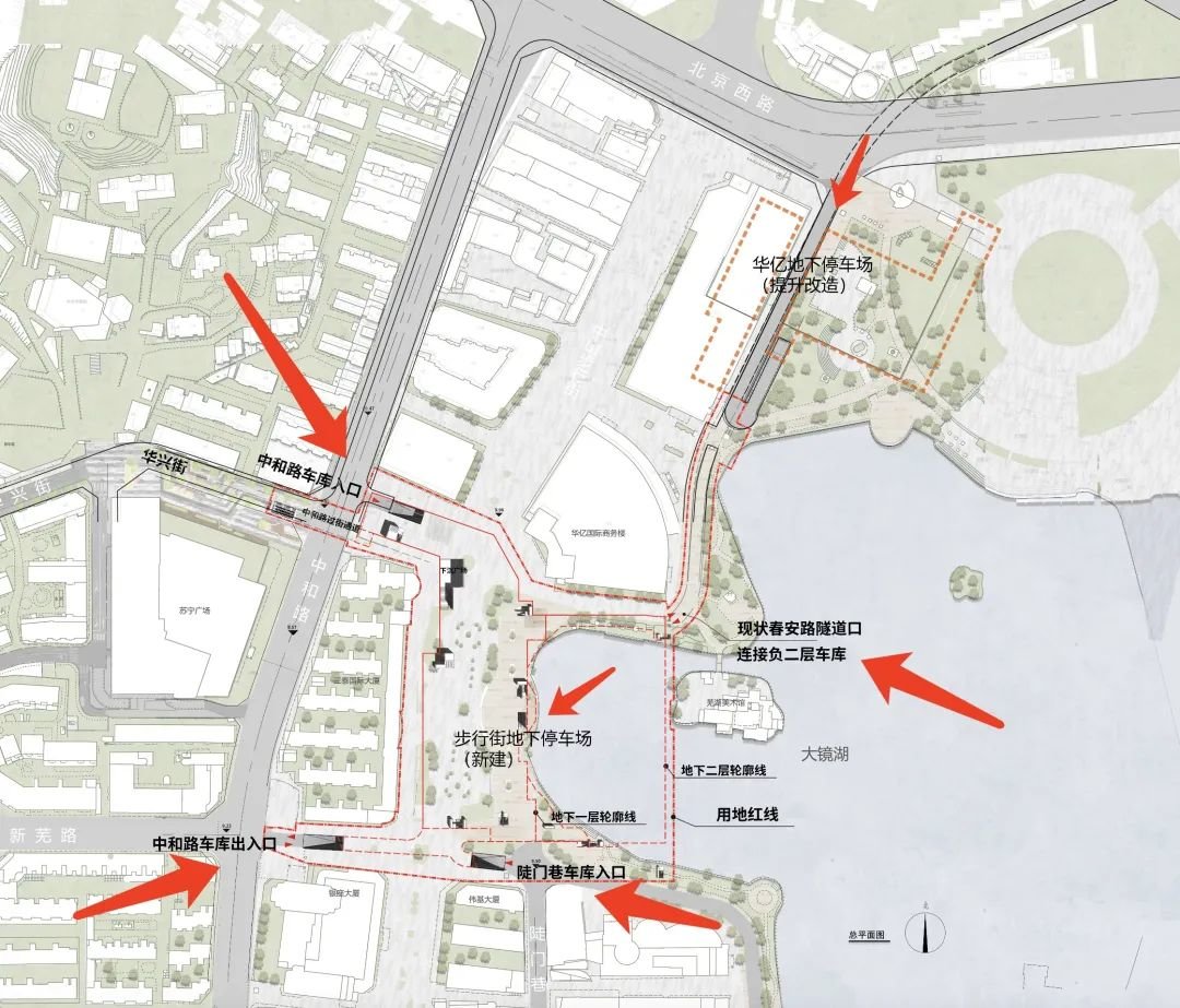 为解决中山路步行街周边区域停车难问题,进一步提升城市中心区商业活力,根据芜湖市中心城区停车场布局规划等相关规划,拟在中山路步行街中部,三泰大厦东侧利用现有步行街广场及大镜湖水下空间建设地下停车场。