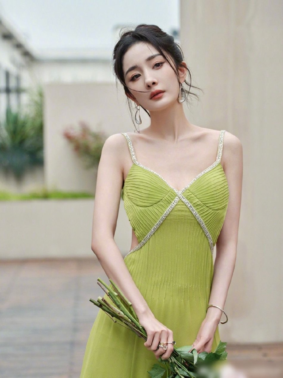 杨幂绿色抹胸长裙大秀美背 千娇百媚美艳动人