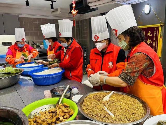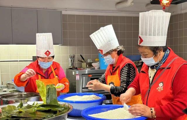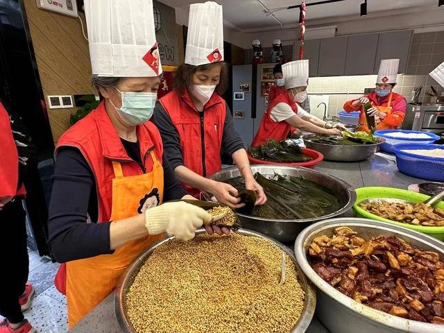 端午节临近,在徐汇区天平街道嘉园新时代文明实践公共客厅,一锅锅大肉粽蒸腾起的热气里,欢声笑语萦绕。为了这2千余个粽子,一群头发花白的阿姨已经忙活两天了。