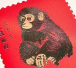 邮票上的猴子眼睛炯炯有神,绒毛乌黑亮泽,红色背景衬托出喜庆的节日氛围,无论是造型还是工艺都堪称精品。