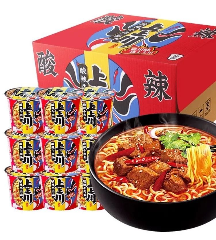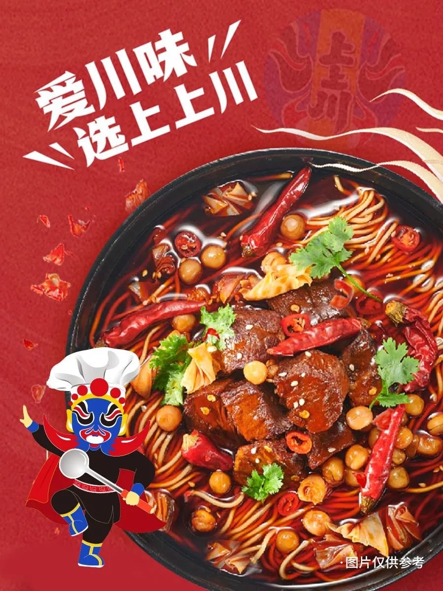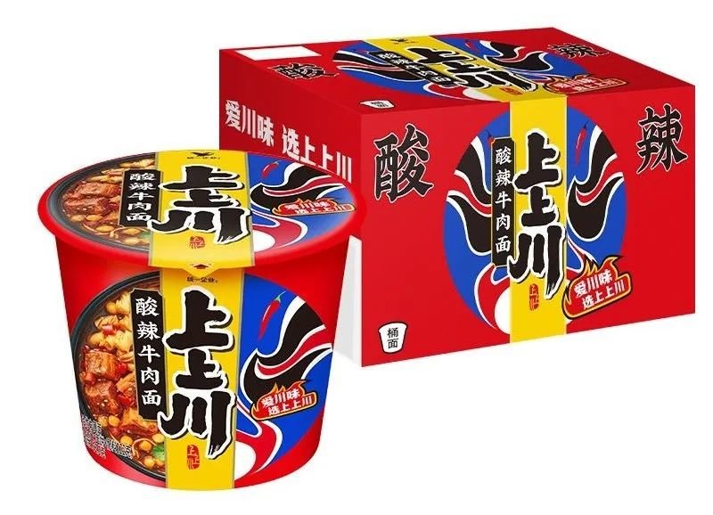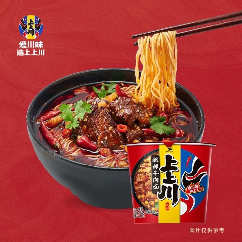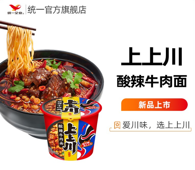 统一这次上新了一款方便面“上上川酸辣牛肉面”并打出了“爱川味,选上上川”的广告口号。