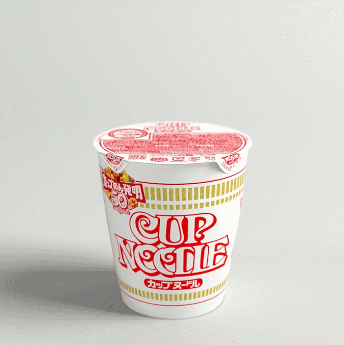 还有之前日清食品为桶装泡面包装设计了一个“双耳盖”设计,泡面时将链各个猫耳朵往下压紧,就可以达到密封效果。