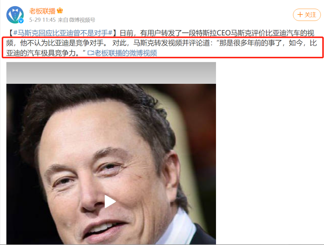 马斯克对当年看不上比亚迪的言论,也回应道:“那是很多年前的事了,他们的车现在竞争力很强。”