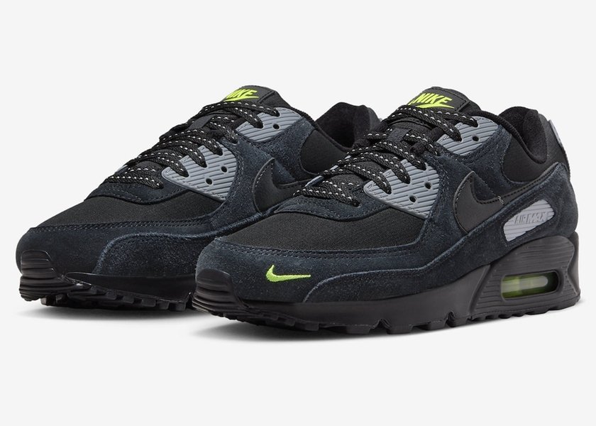 最近一双全新配色的 Nike Air Max 90 公布了官图。整双鞋以纯黑色为主调,配合麂皮材质,搭配荧光绿色以及鞋带扣等部分的灰色,视觉效果十分出众。据悉这双全新配色 Nike Air Max 90 将于今年登场,具体发售信息目前未知。
