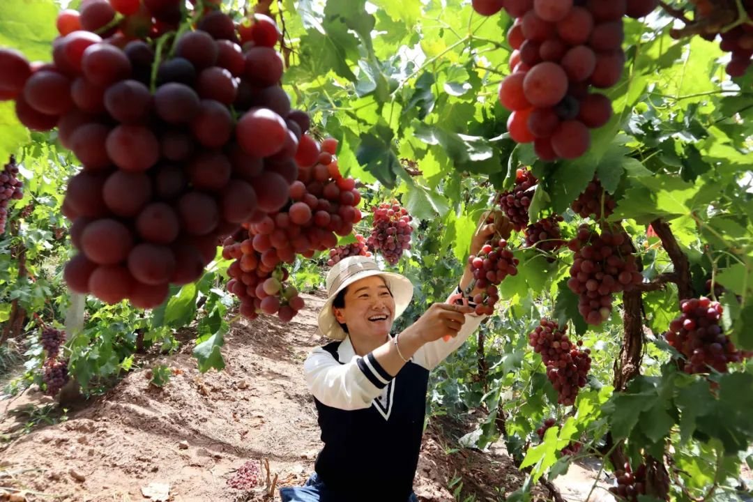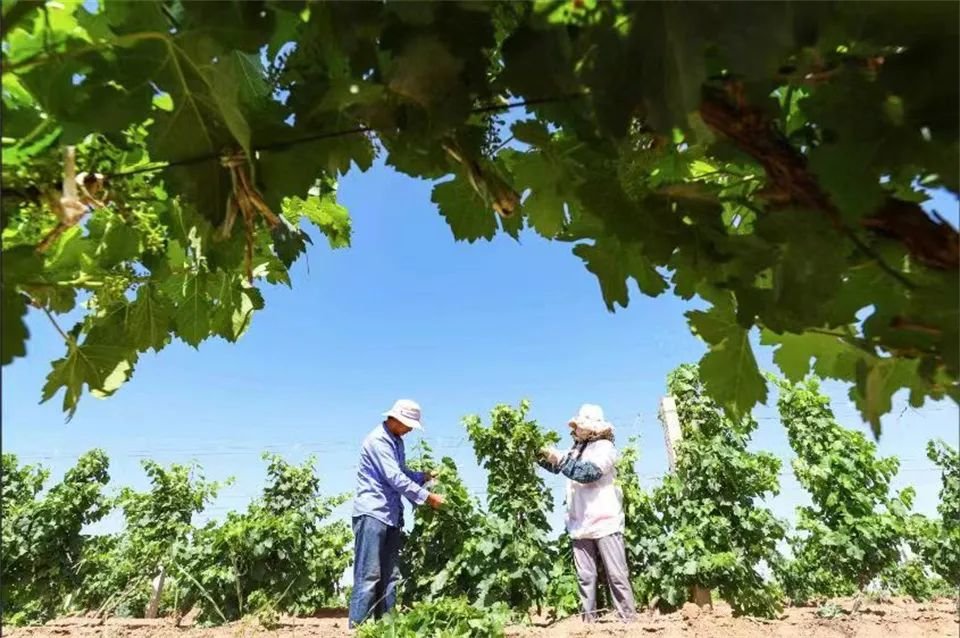 在红桥庄园带动下,临泽县板桥镇也建起了占地面积5000亩的葡萄产业园,建设施拱棚400座,配套完善2.5万立方蓄水池、高低压线路、产业园道路等基础设施,成为集采摘、观光、旅游、休闲、科研、生产为一体的“沙生产业园”。“今年5月我们在葡萄产业园又新建了葡萄欢乐谷,推出沙漠娱乐体验、葡萄藤下手工坊、特色美食、自助烧烤等,采摘园里除了桃、杏、李、葡萄,还有莲雾、芭乐、释迦果等热带水果。”板桥镇友好村党支部书记、主任陈学森表示,以沙治沙实现企业发展、产业壮大、集体增收、农户致富多方共赢,板桥镇也成为“河西走廊葡萄风情小镇”,全镇葡萄种植面积达到1.5万亩,葡萄产业总产值达2亿元。