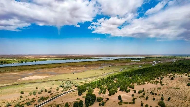 白云蓝天下,一棵棵挺拔的杨树、柳树、榆树拱卫着房舍农田,一株株摇曳的梭梭、红柳等沙生植物在荒漠里此起彼伏,有的簇拥着长成茂密的一片,有的稀疏独自长高,株株都有顽强的生命力,誓将荒漠变成“绿海”,极目之处,黄沙正在被绿色覆盖。