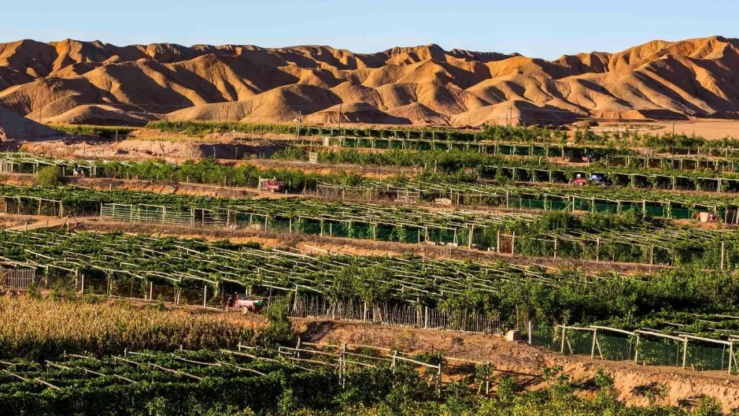 位于巴丹吉林沙漠南缘的临泽县,境内沙漠、戈壁面积占三分之二以上,生态环境极其脆弱。“风起沙石扬,埋地又压房”,曾是当地群众深受沙尘侵袭的真实写照。“原来北部是一望无际的荒漠,种啥都不行。多年来,全县干部群众进行一轮又一轮大规模防沙治沙和造林绿化,梭梭、红柳、枣树等植物慢慢长大,草也长起来了,黄沙不再‘威风’,慢慢‘退缩’。过去寸草不生的沙漠戈壁,我们种上葡萄树、枣树、杏树、桃树等,从刚开始结几个果子,到现在果子挂满树头,沙地逐渐成为‘聚宝盆’,越来越有盼头。”温君杰对比今昔,意犹未尽。