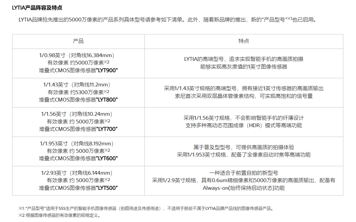 在前些日子发布的讯息中,索尼一次性推出了多款 LYTIA 品牌的传感器产品,不过这些型号有一部分跟过去的 IMX 产品能对上号,比如 LYTIA 的高端型号 LYT900,就跟现在已经在旗舰机上广泛运用的一英寸传感器 IMX989 的规格极为接近;LYT800 则是跟索尼 Xperia 1 V 上的 IMX888 规格接近;LYT700 则是跟大家熟悉的 IMX890 相当接近。