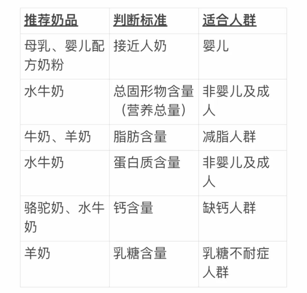 为了方便大家挑选,在这里给大家总结了一份针对不同人群的购奶指南↓