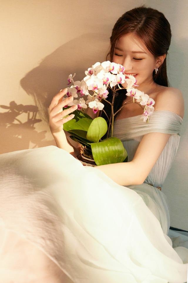 赵露思一字肩白裙仙气飘飘 手捧鲜花笑容甜美人比花娇