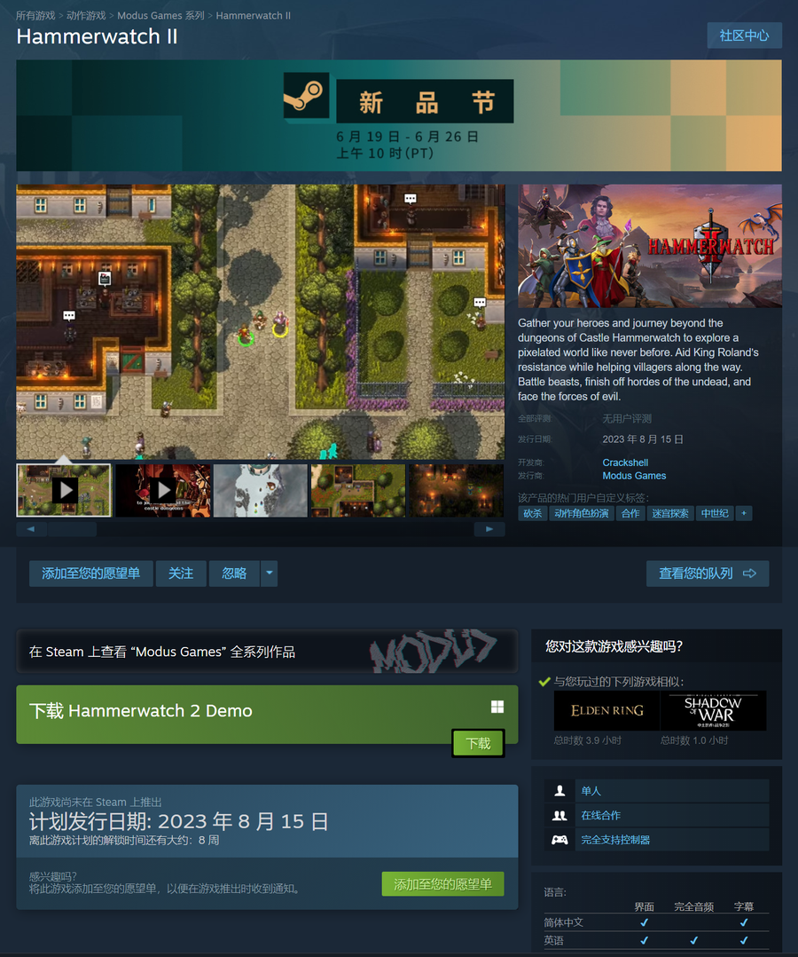 《铁锤守卫英雄传2》PC版将于8月15日发售,支持简体中文。目前试玩版现已上线Steam游戏平台,感兴趣的玩家们可以提前下载试玩。