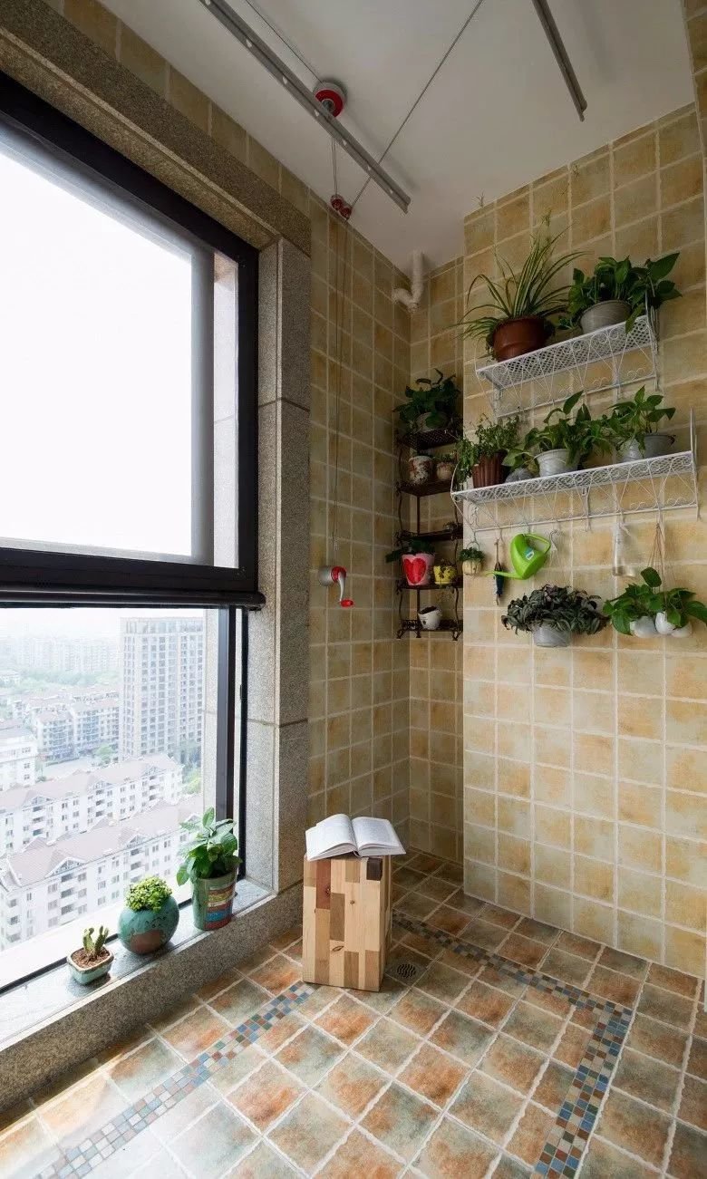 ▲阳台另一侧,装上铁艺收纳架,加入绿植装饰点缀,也让空间显得充满生机与清新的文艺气息。