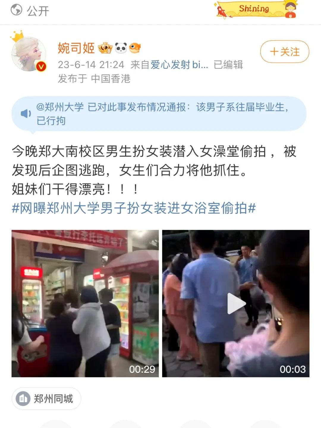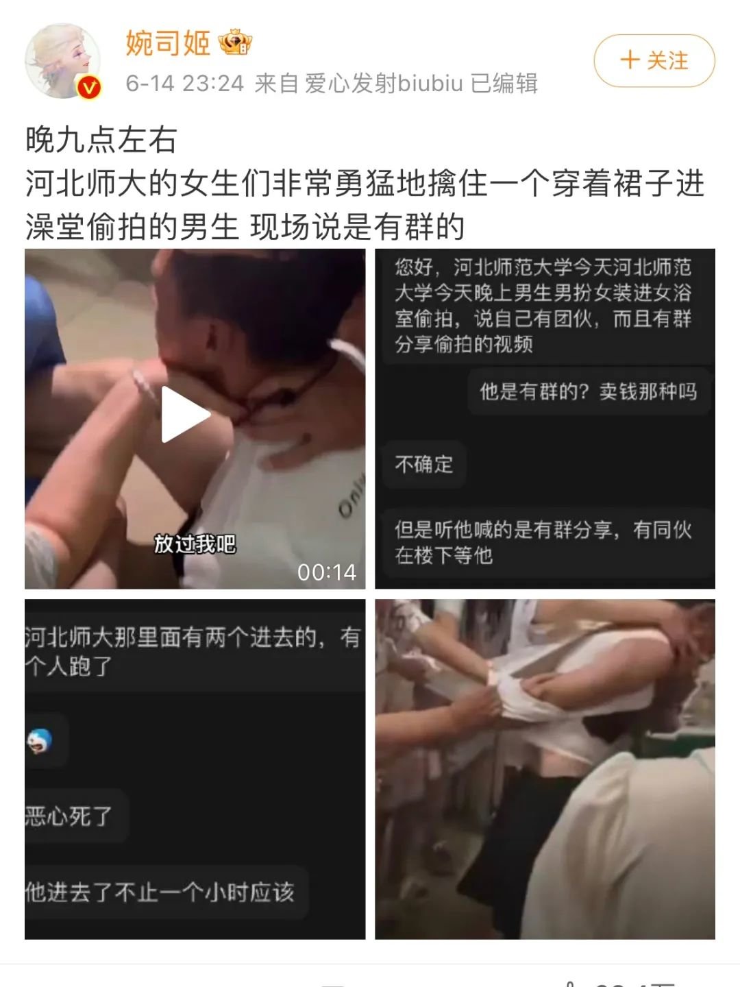6月14日晚,郑州大学与河北师范大学各发生一起男扮女装进女澡堂偷拍事件。