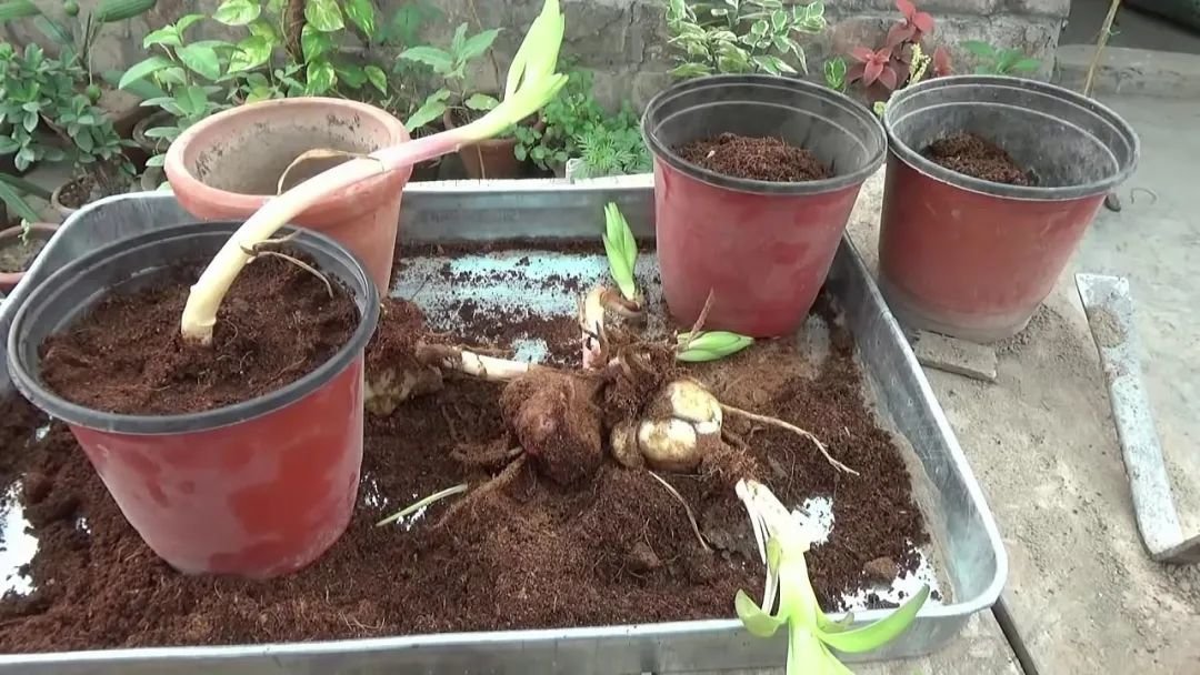平常我们买回家里的一些百合花的鳞茎,最好预先处理一下,可以用多菌灵溶液浸泡一下,多菌灵兑水1000倍或1500倍,每次大概浸泡30~60分钟左右,再拿起来沥干水分,一般都是要晾2~3小时,这样处理可以减少百合花感染黑霉病和根腐病的风险。处理好臭的百合花鳞茎就可以准备合适的花盆和土壤进行栽种了。