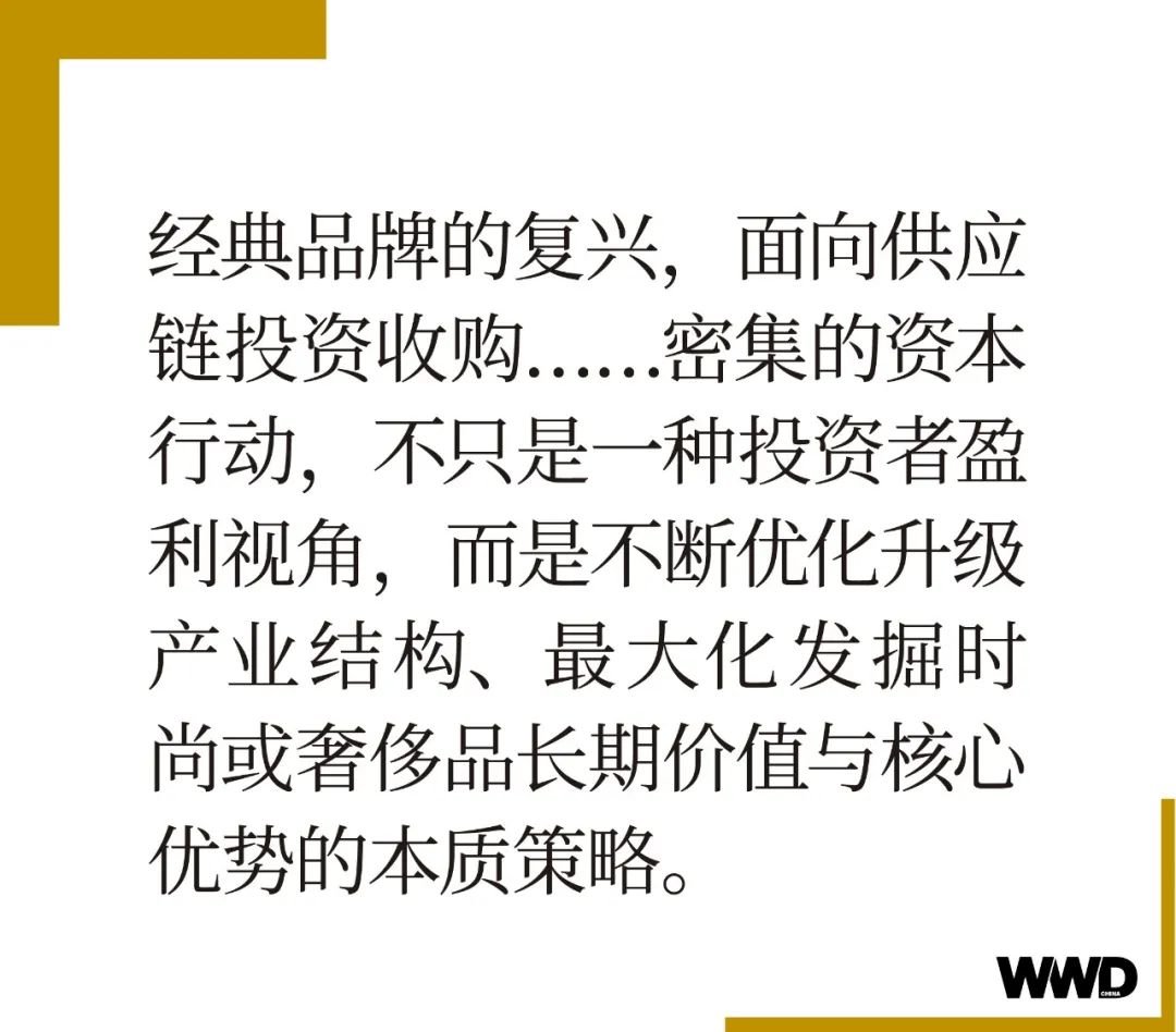 随着6月即将步入尾声,经典品牌的复兴,面向供应链投资收购……密集的资本行动,不只是一种投资者盈利视角,而是不断优化升级产业结构、最大化发掘时尚或奢侈品长期价值与核心优势的本质策略。