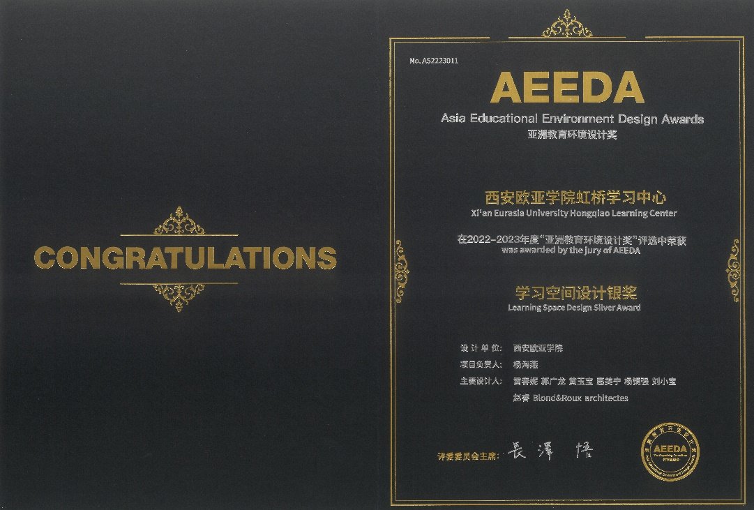 6月16日,AEEDA亚洲教育环境设计奖2022-2023年颁奖盛典在上海举行。我校北区e座教学楼荣获“学习空间设计金奖”、虹桥花园荣获“校园景观设计金奖”、南区设计与媒体中心荣获“学习空间设计银奖”、虹桥学习中心荣获“学习空间设计银奖”。我校基建处处长雷春妮被聘为2022-2023年AEEDA亚洲教育环境设计奖评委并出席颁奖典礼,基建处副处长杨海燕代表学校上台领奖。