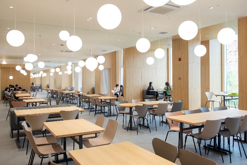 虹桥学习中心:餐厅如何被有效使用,是否有更多的可能性,通过强调使用空间的体验,为师生的就餐和生活以及校园生活方式注入生活的幸福感,是这座“虹桥学习中心”的使命。虹桥学习中心,是西安欧亚学院 “以学生为中心”和延续两期“客厅计划”的又一个改造项目,打造校园西区集餐饮、商业、学习讨论、互动休闲、展览展示等为一体的复合型多功能生活体验空间,这是欧亚学院持续坚持高品质育人环境中生活环境的理念,也是集合非正式学习空间和生活服务的综合场所,因此通过项目改造使得校园师生生活便利度及幸福感有了非常大的提升。
