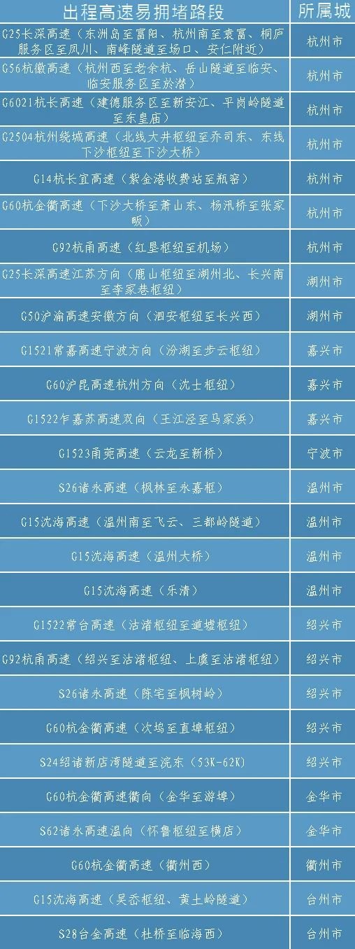 全省各设区市景区易拥堵、事故多发及施工路段信息