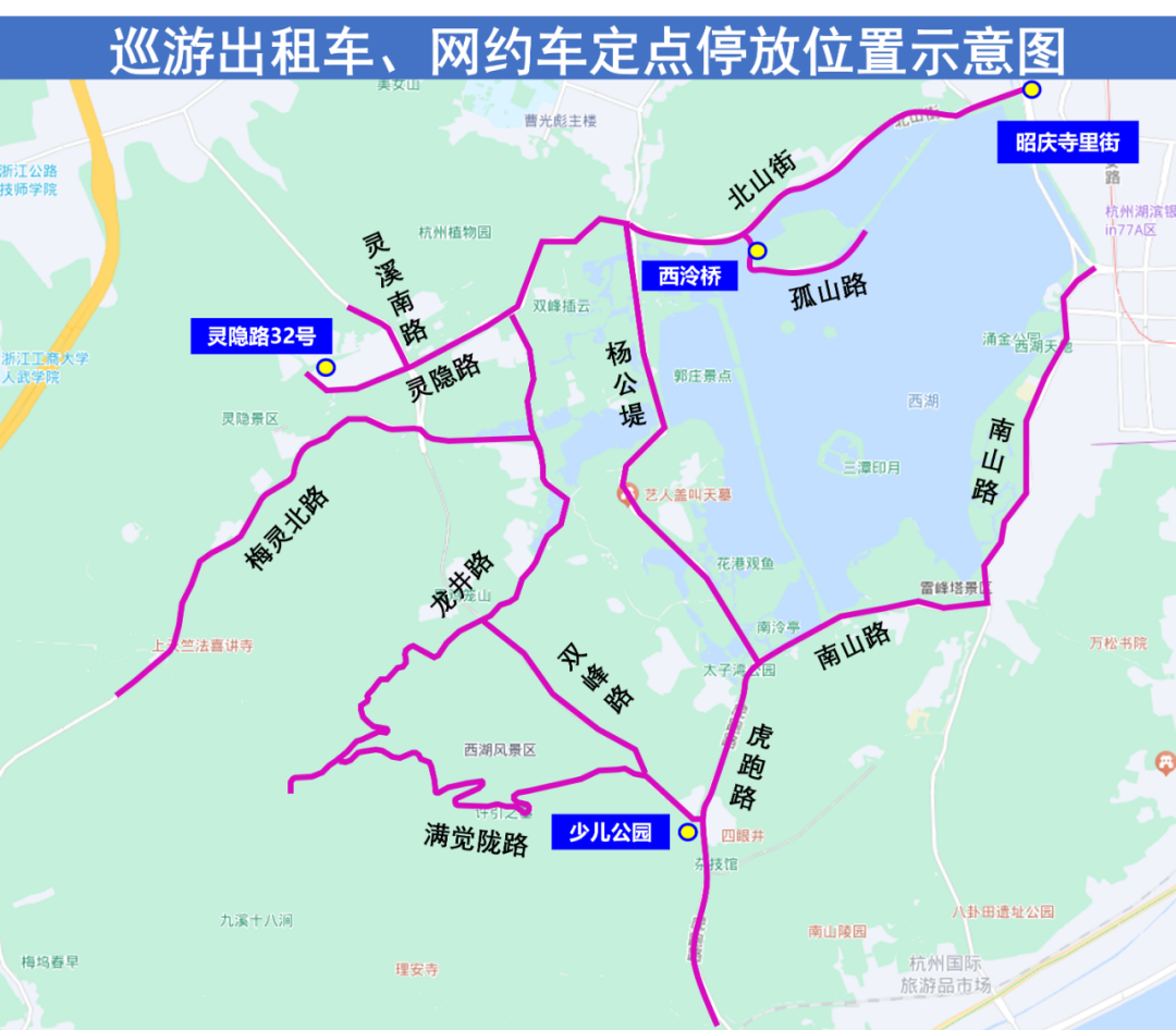 端午期间,进入景区的网约车、出租车请选择灵隐路32号、少儿公园、西泠桥和昭庆寺里街等上下客点有序停放。同时,公安交管部门将对北山街、杨公堤、南山路、虎跑路、灵隐路、梅灵北路等10条路段实施违停严管,在提醒同时予以处罚。