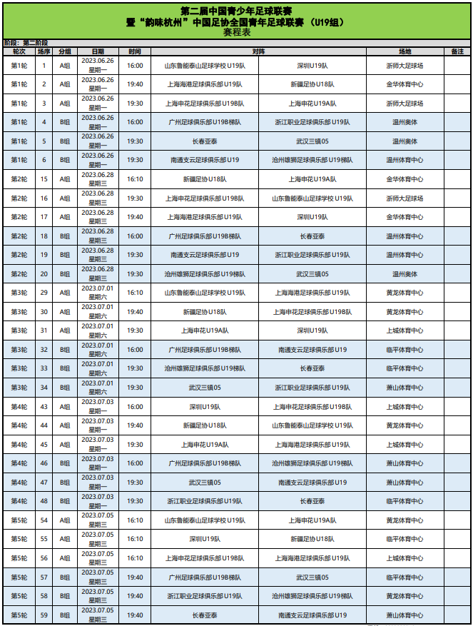 2023第二届中国青少年足球联赛暨“韵味杭州”中国足协全国青年足球联赛(U19组)