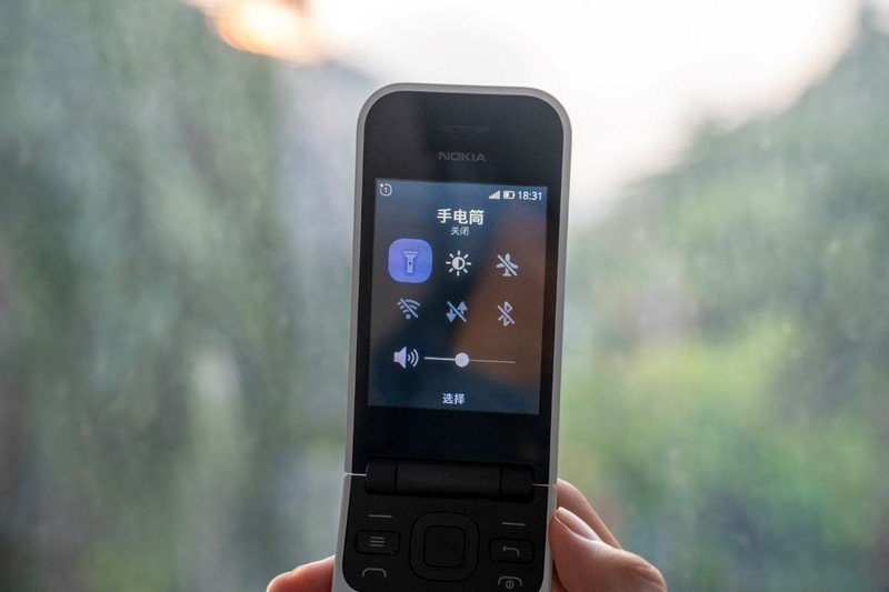 在操作方式上,2720 Flip和以前的按键功能机基本一样,唯一不同的是在主页面加入了与现在智能手机类似的下拉快捷开关,按向上键即可打开,快速开关手电筒、屏幕亮度、飞行模式、WiFi、移动数据、蓝牙和音量。这些交互其实设计得挺好,上手难度低,又符合直觉,可惜的是这块键盘和屏幕。