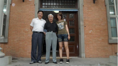 路左边是1925年建成的思源堂,那是南开大学的标志性建筑。思源堂后边是东村教师宿舍。所谓东村不过是三四排平房,已经很陈旧了。父亲来来回回地转着,最后站在了一个小院门外说:“这个小院好像是我们的故居,你妈那张穿旗袍的照片就是在这里照的,在这里给我照张像吧。”我看着那个半人高的围墙,大约10多平方米的小院,想起了小时候妈妈讲的故事,想象着她坐在院门处为地下党开会放哨的情景。不知为什么,小时候妈妈讲这故事时,我脑海中总浮现出妈妈坐在北京那种四合院门口,没想到这个小院这么小。在故居前照相后,父亲接着说:“这房子这么陈旧了,当年感觉是洋房,很多教授住在这里,我隔壁那个院子是南开的教务长住,那教务长是经济学家,叫什么名字?这么熟悉的名字,想不起来了。”爸爸一直记忆力不错,年过九十,演讲时,常常还是拿一张写了提纲的纸,就开讲一小时。但是近两年常常出现这种忘事的情况。我提醒他:“是陈序经先生吧?”他笑了:“是的,是的,我这脑子不行了。”
