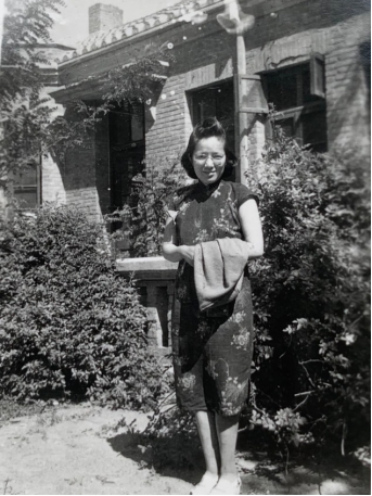 1949年5月14日母亲彭兰先生于南开大学东村故居前