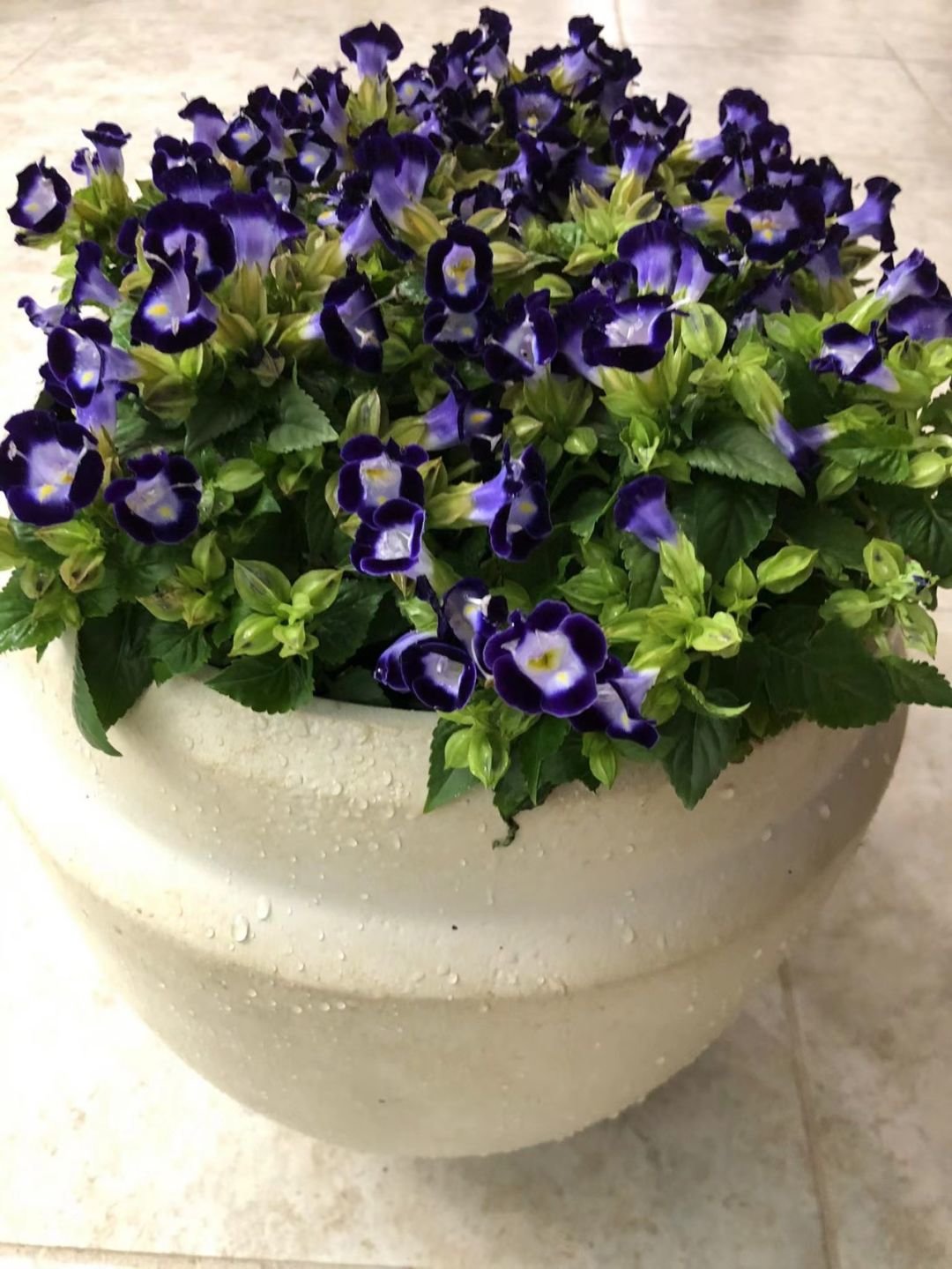 夏堇的品种特别多,有垂盆的品种,可以用吊盆养护,也可以单独养在一个小花盆里,它们的开花能力是特别强的,且都很耐高温耐暴晒。