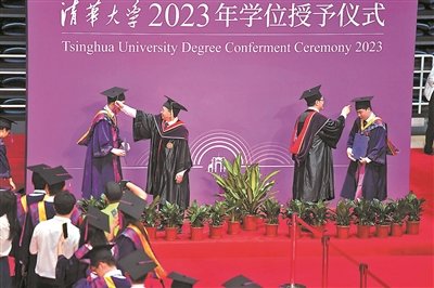 本报讯(记者雷嘉)盛夏又至,骊歌唱响。昨日清华大学东大操场变成了一片“清华紫”的海洋——2023年本科生毕业典礼在这里举行。