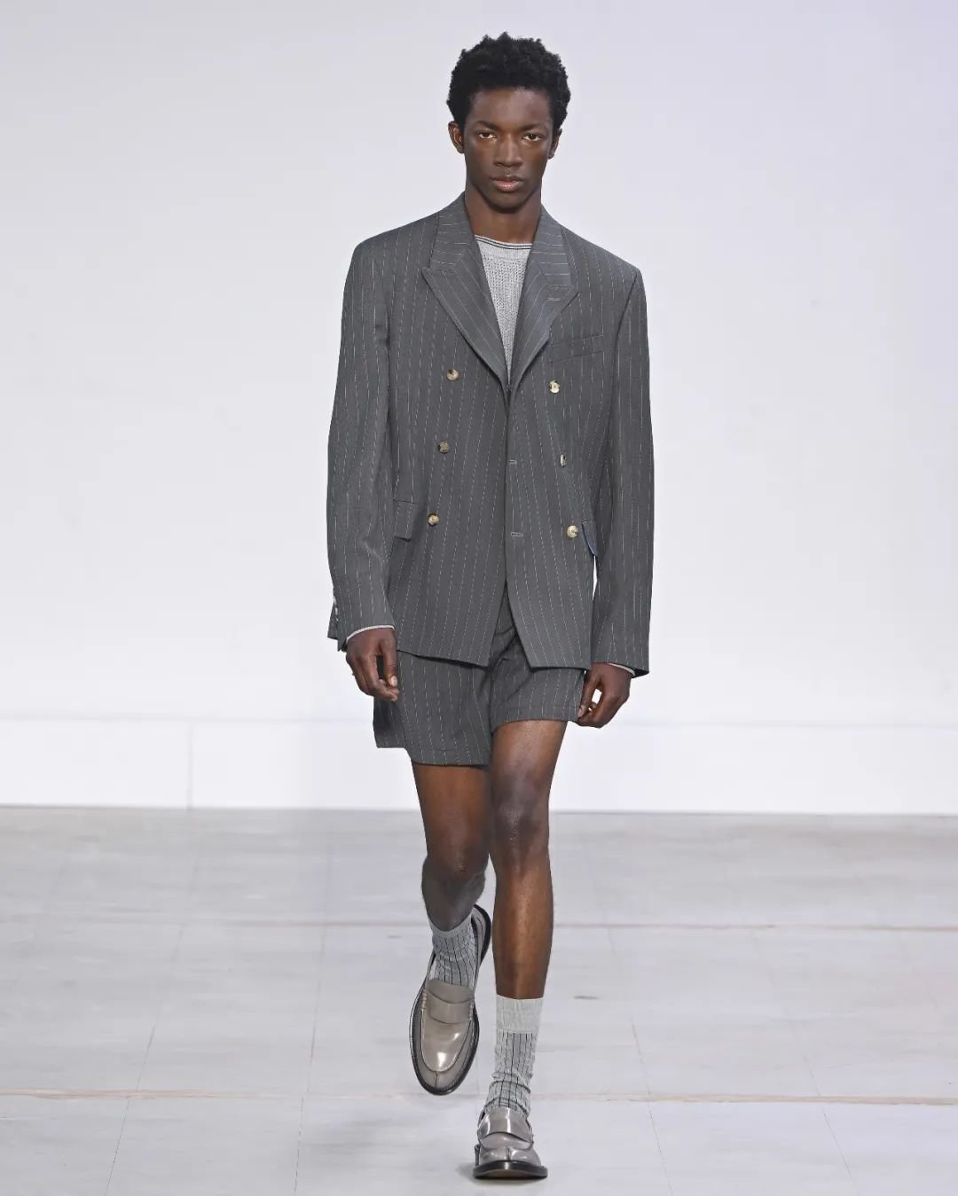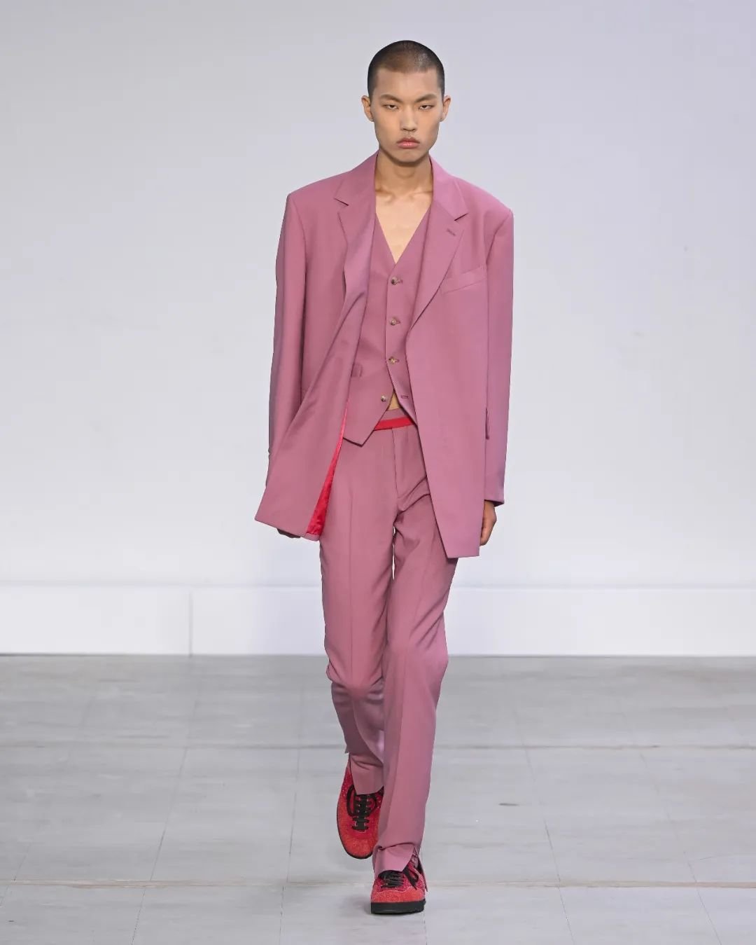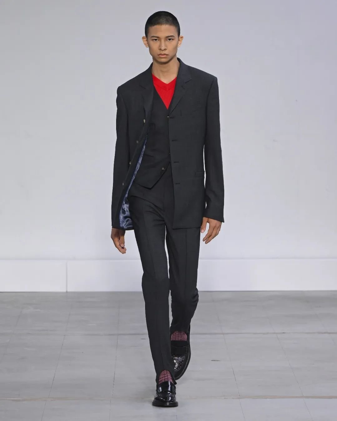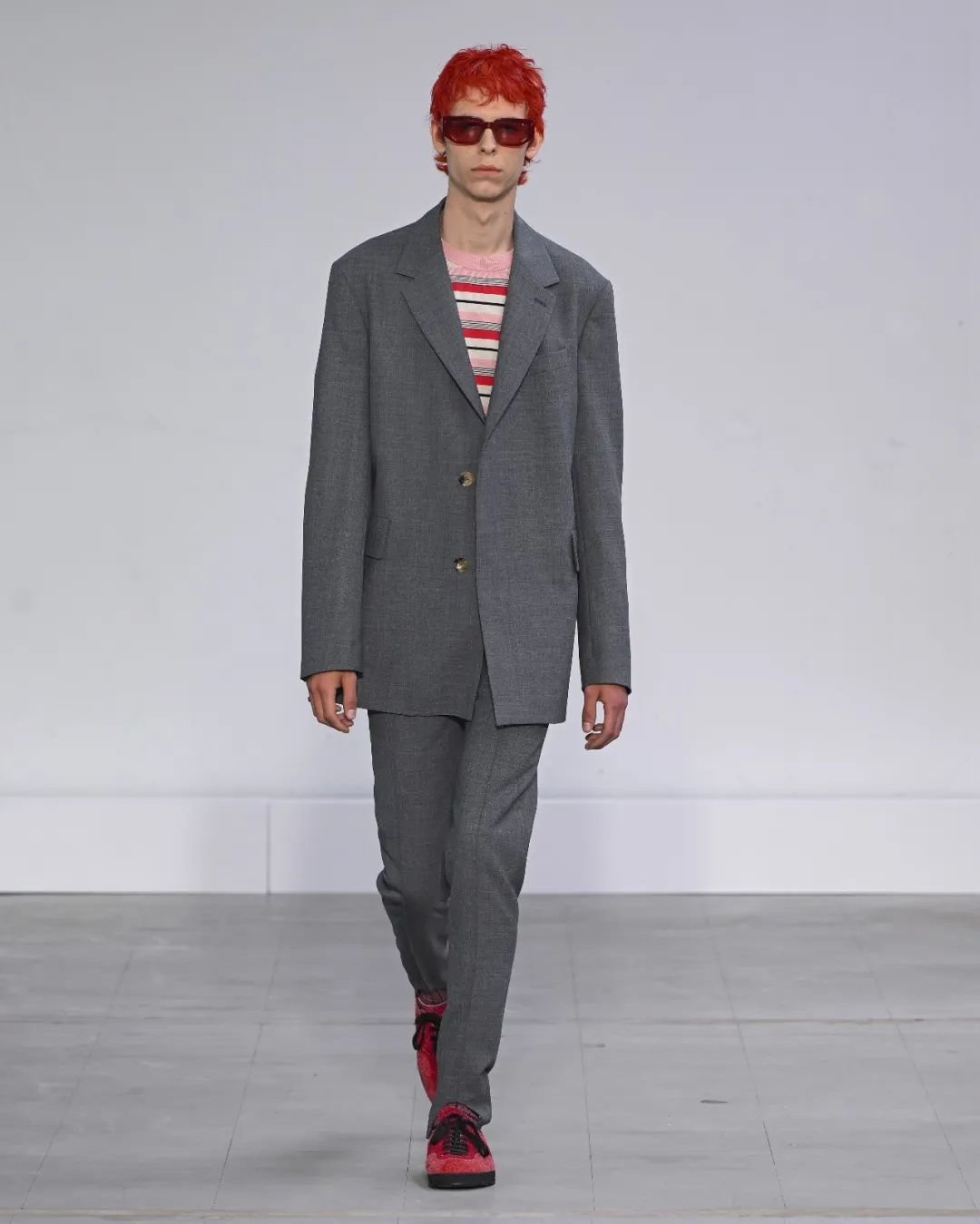 Paul Smith 的 2024 春夏男装发布会以标志性的西装为始终,探索了各种形式的裁剪。该系列向 Paul Smith 的致敬了其经典作品,并引用了 1970 年代到现今的裁剪元素,颠覆了传统男装的陈规,并参考了工装和军装的元素。