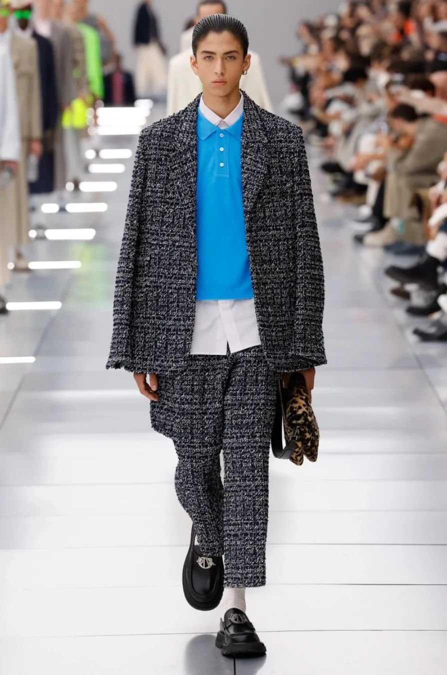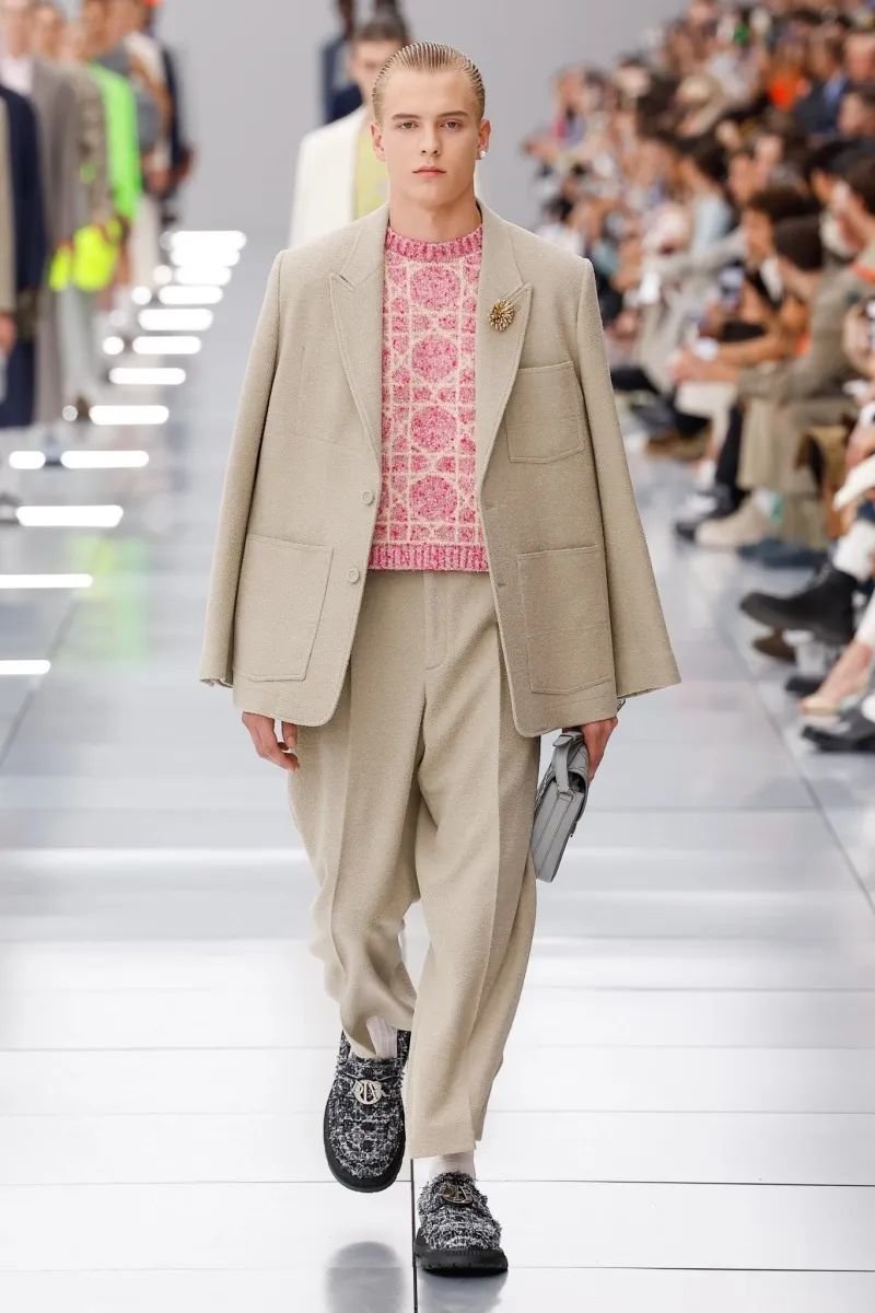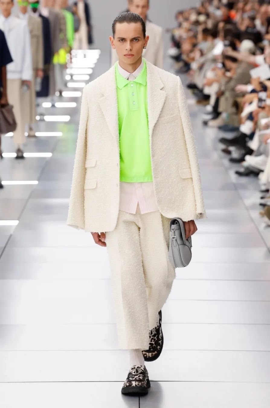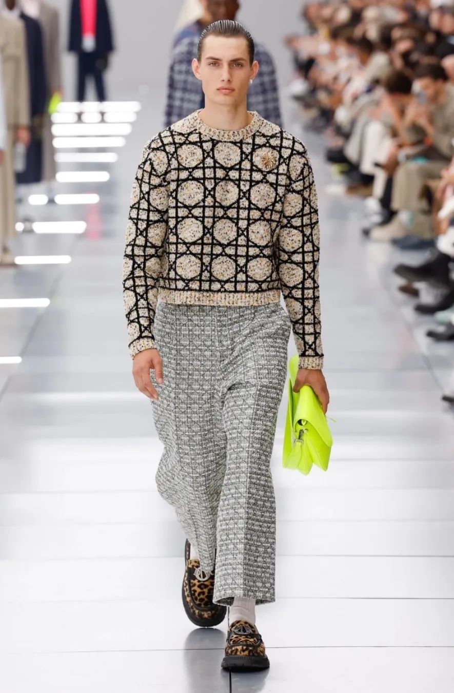 他在迪奥任职五年,为了庆祝这个里程碑,2024 春夏系列向品牌的高级订制传统致敬。以克里斯汀·迪奥(Christian Dior)与他的继任者们为灵感,继承了女装文化并应用于当代男装。荧光色和贯穿发布会的 Cannage 花篮纹成为亮点。