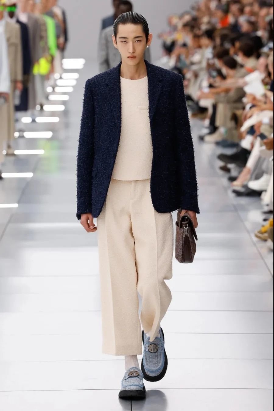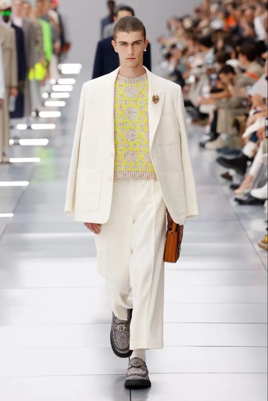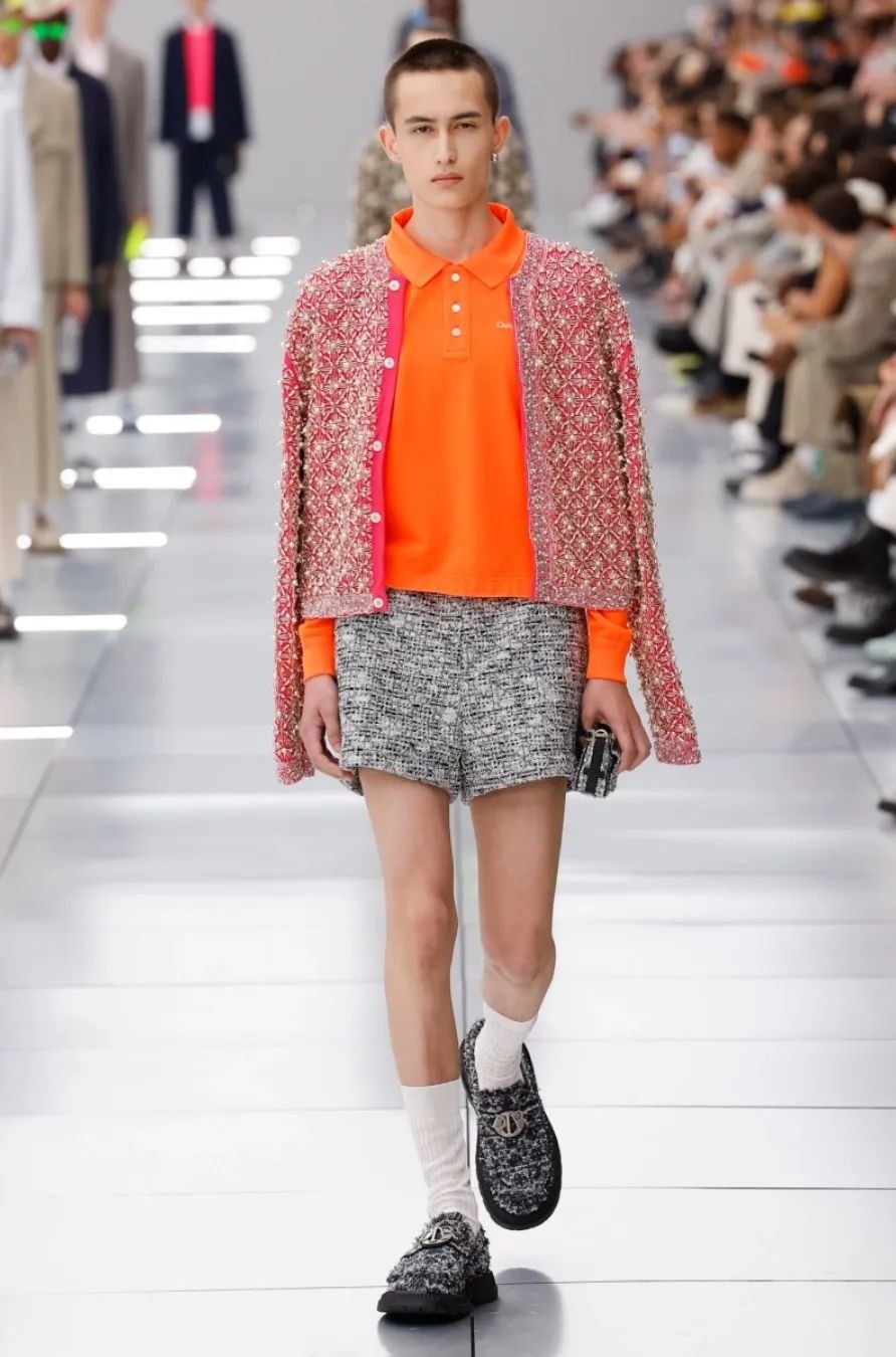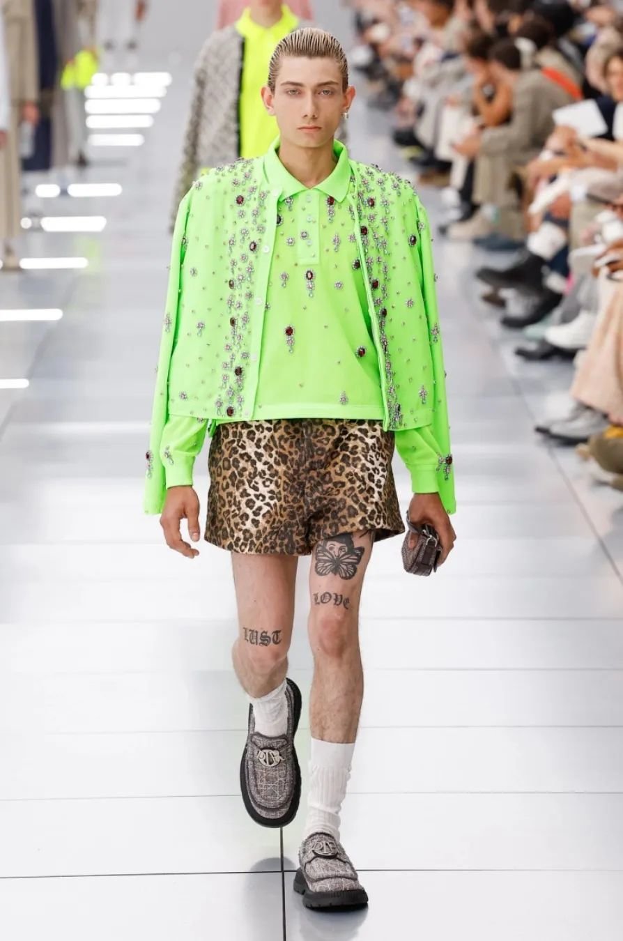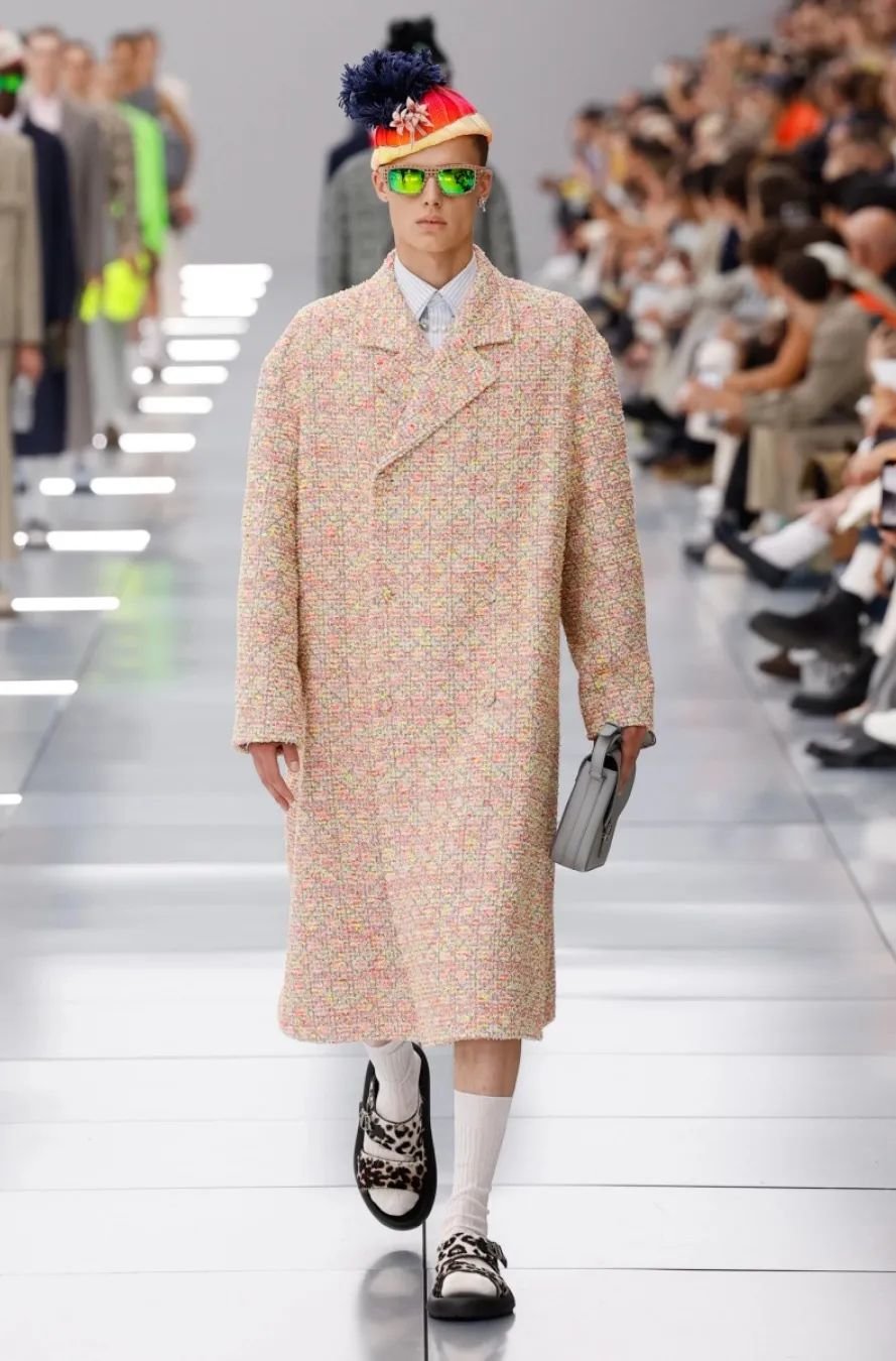 他在迪奥任职五年,为了庆祝这个里程碑,2024 春夏系列向品牌的高级订制传统致敬。以克里斯汀·迪奥(Christian Dior)与他的继任者们为灵感,继承了女装文化并应用于当代男装。荧光色和贯穿发布会的 Cannage 花篮纹成为亮点。