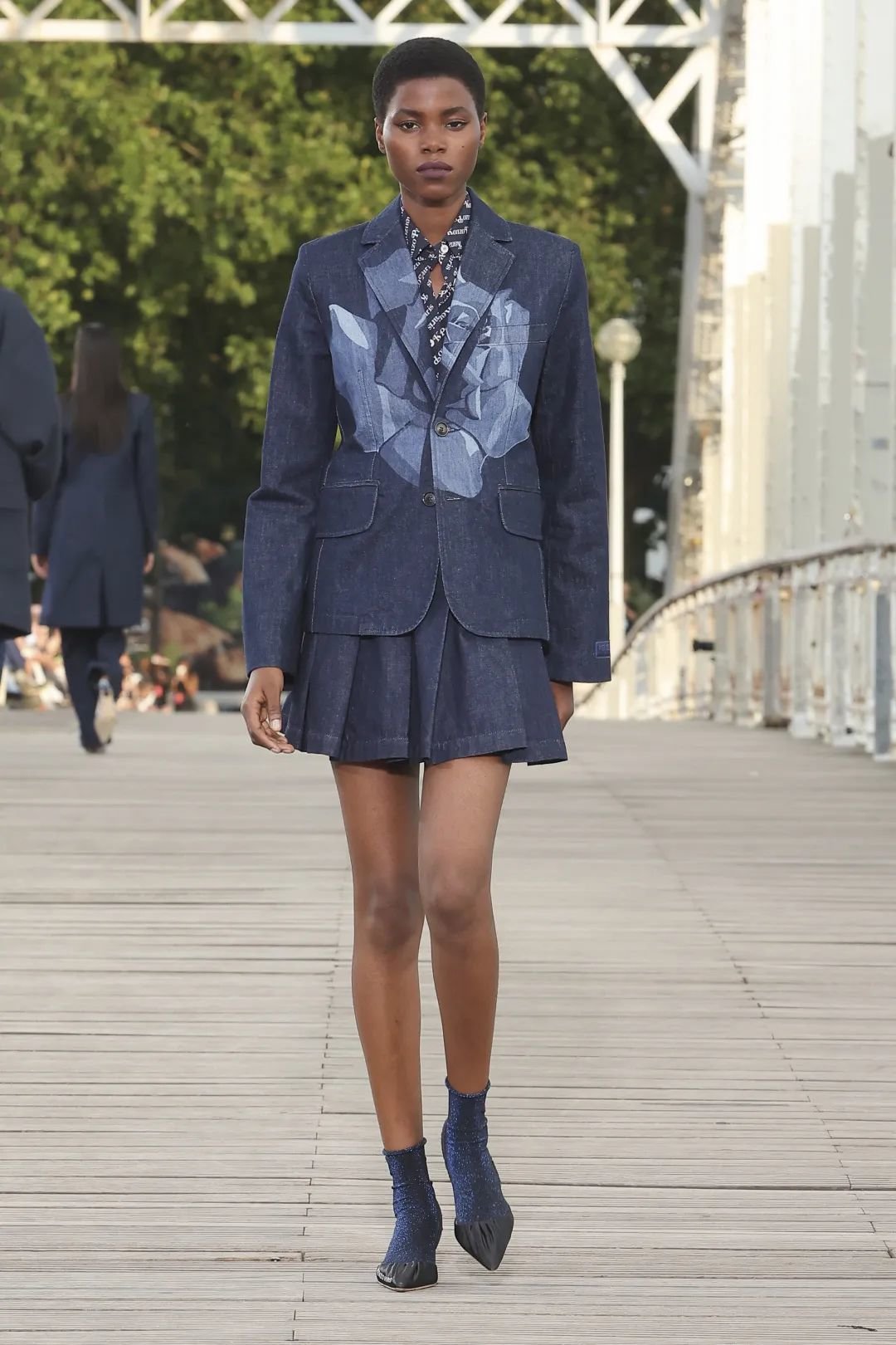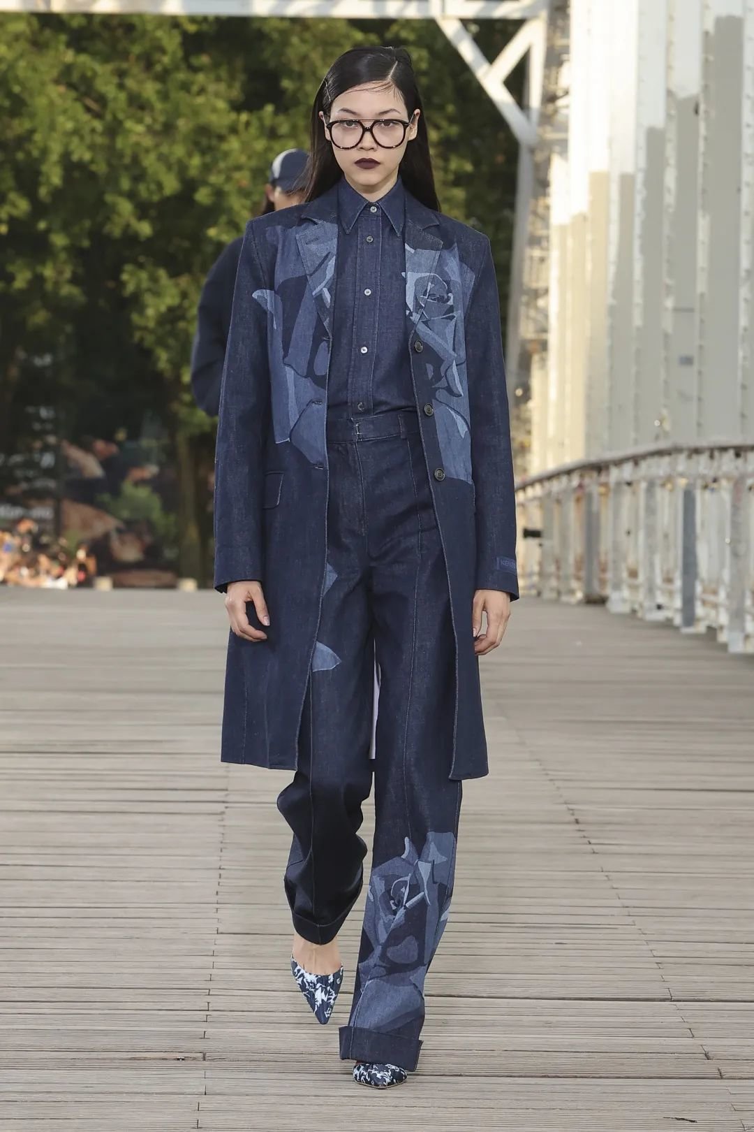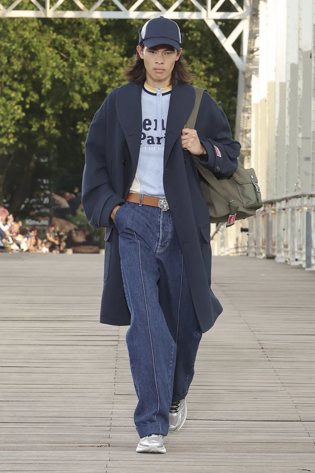 潮流教父 Nigo 是继 Kenzo 创始人高田贤三退休之后,第一位接手艺术总监之位的日本设计师。他的展示中,体现了大量的丹宁元素,品牌 logo 标识以及对 Kenzo flower 的致敬,为 Kenzo 带来更具街头风格和实穿性的设计。WWD