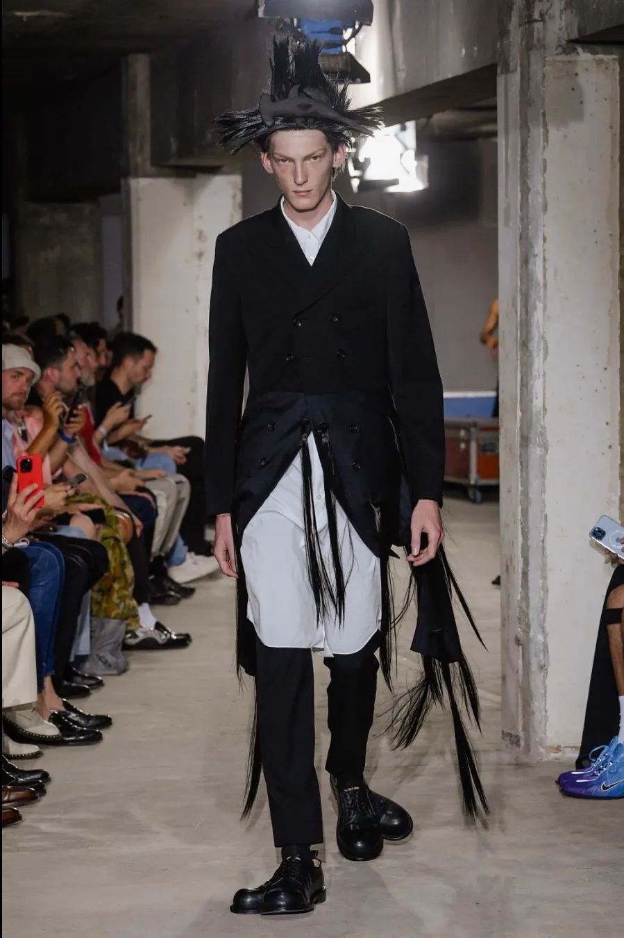 尽管实验性十足,但川久保玲依然保持了男士西装的优雅比例和奢华面料,展现出男士在西装中的魅力。这场名为“超越现实”的秀探索了裁剪的无限可能性。