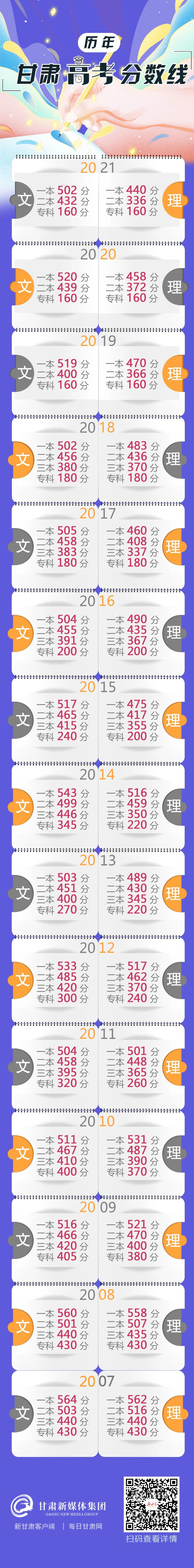 甘肃省历年高考分数线