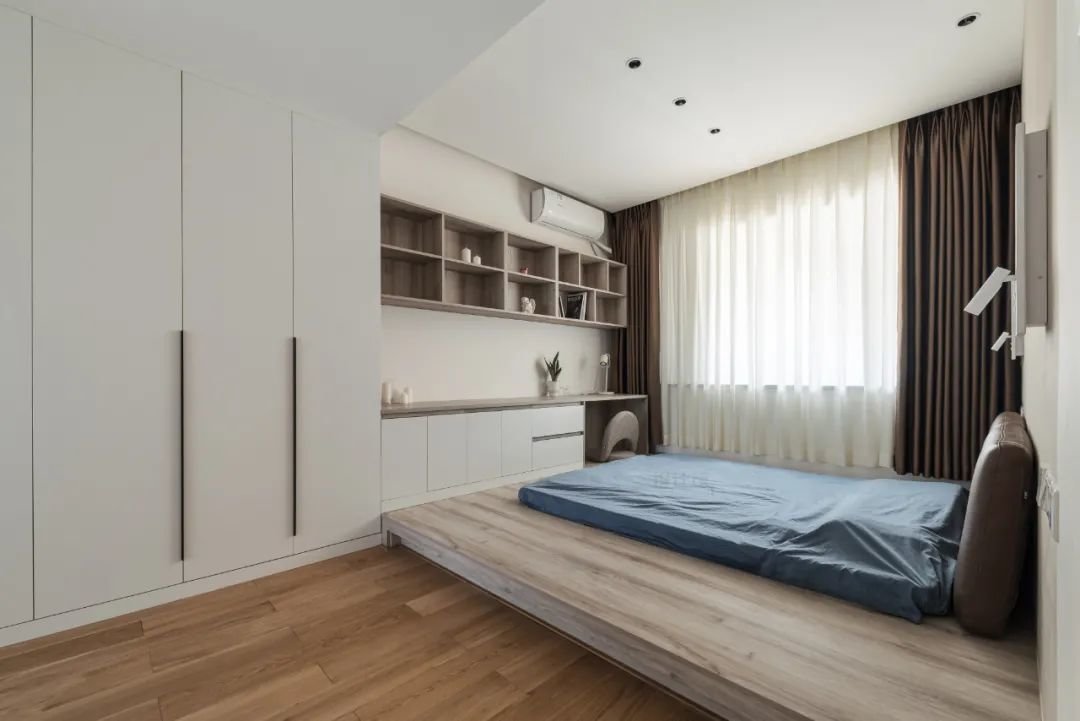 如果吊顶的话,则可以加入筒灯、射灯作为辅助照明,睡前就关掉主灯,开个筒灯或射灯即可;