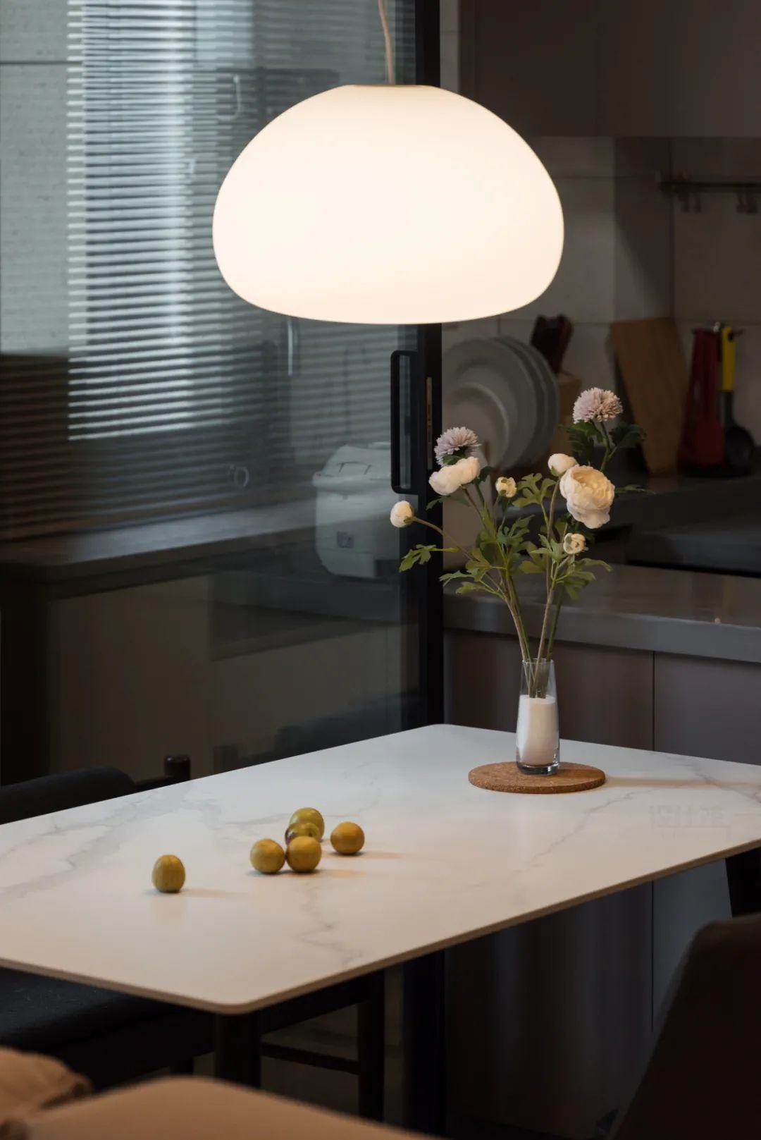 首先,餐厅的灯具搭配,建议在餐桌上方装一盏吊灯,灯光打在餐台上可以提亮食物,增加用餐仪式感;
