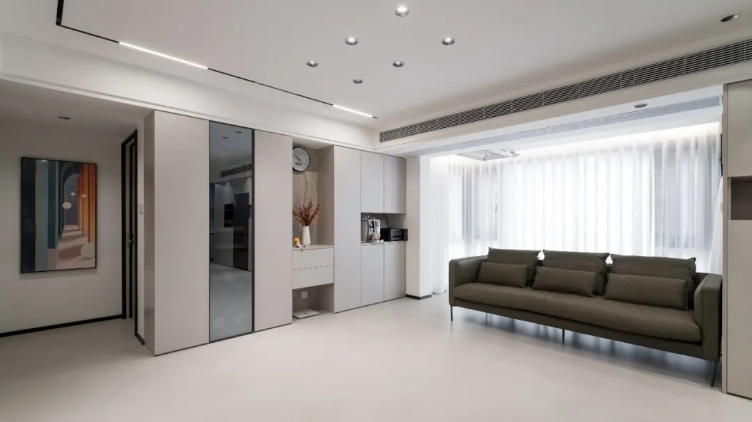 如果是开放式厨房,天花与客餐厅一致的话,则是可以采取筒灯设计,让天花保持更加统一大气的效果;
